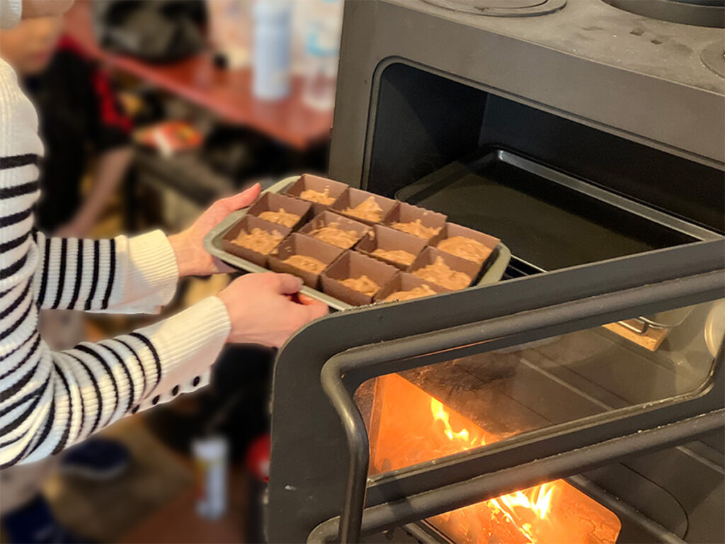 生地をカップにうつして高さを整え、あとはオーブンで焼き上がりを待つだけ!